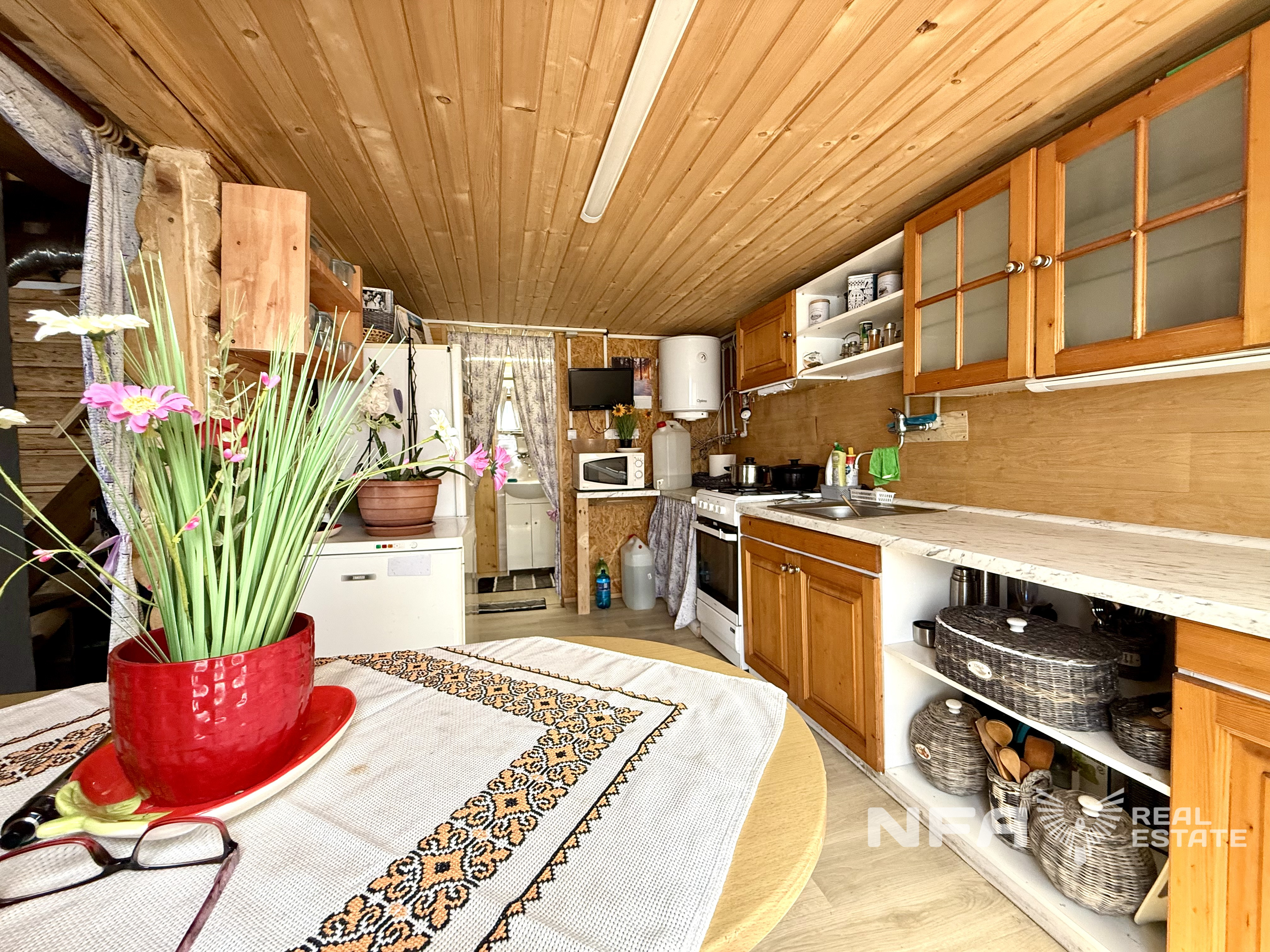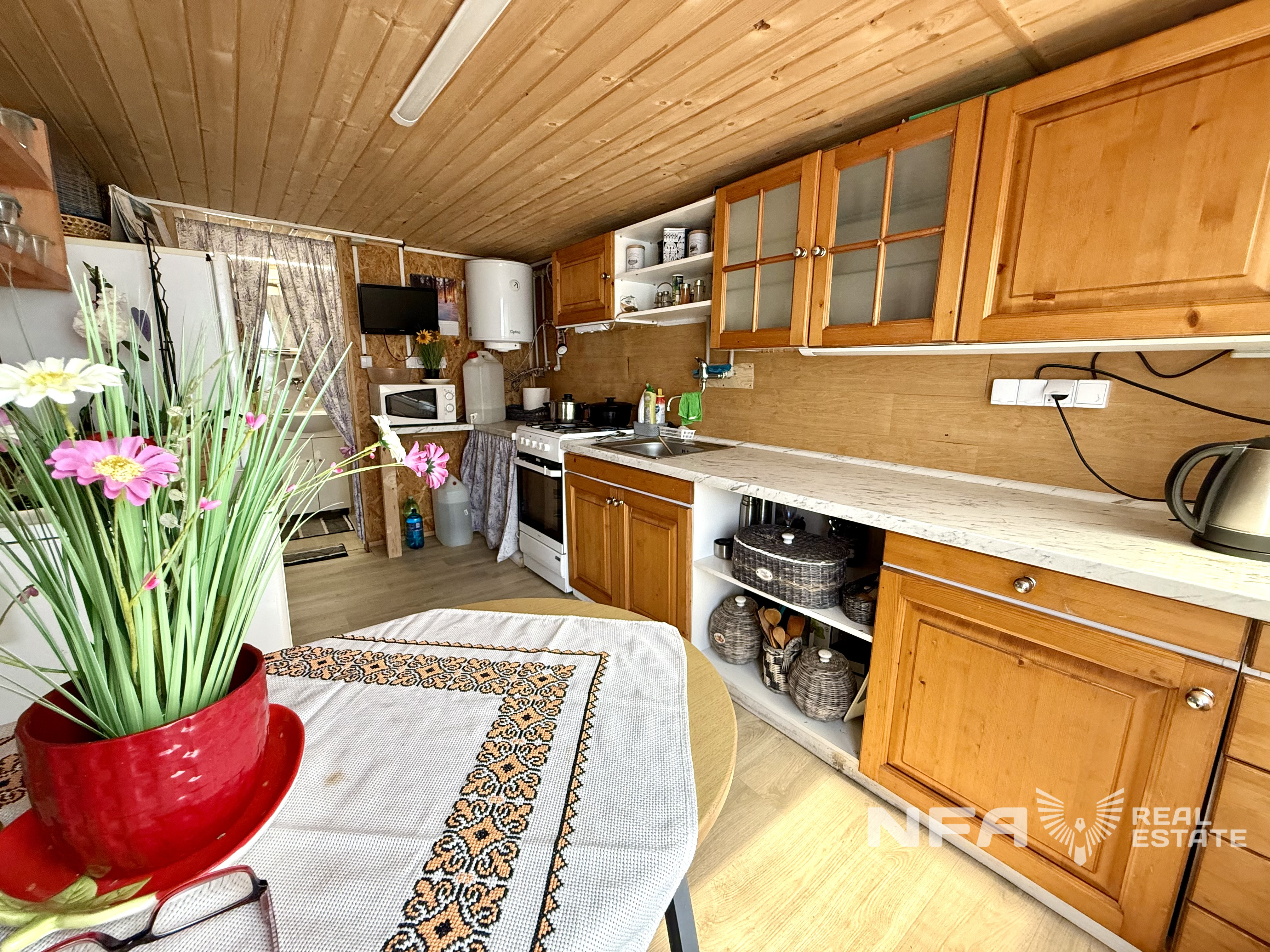 Okná a podlahy: drevené.