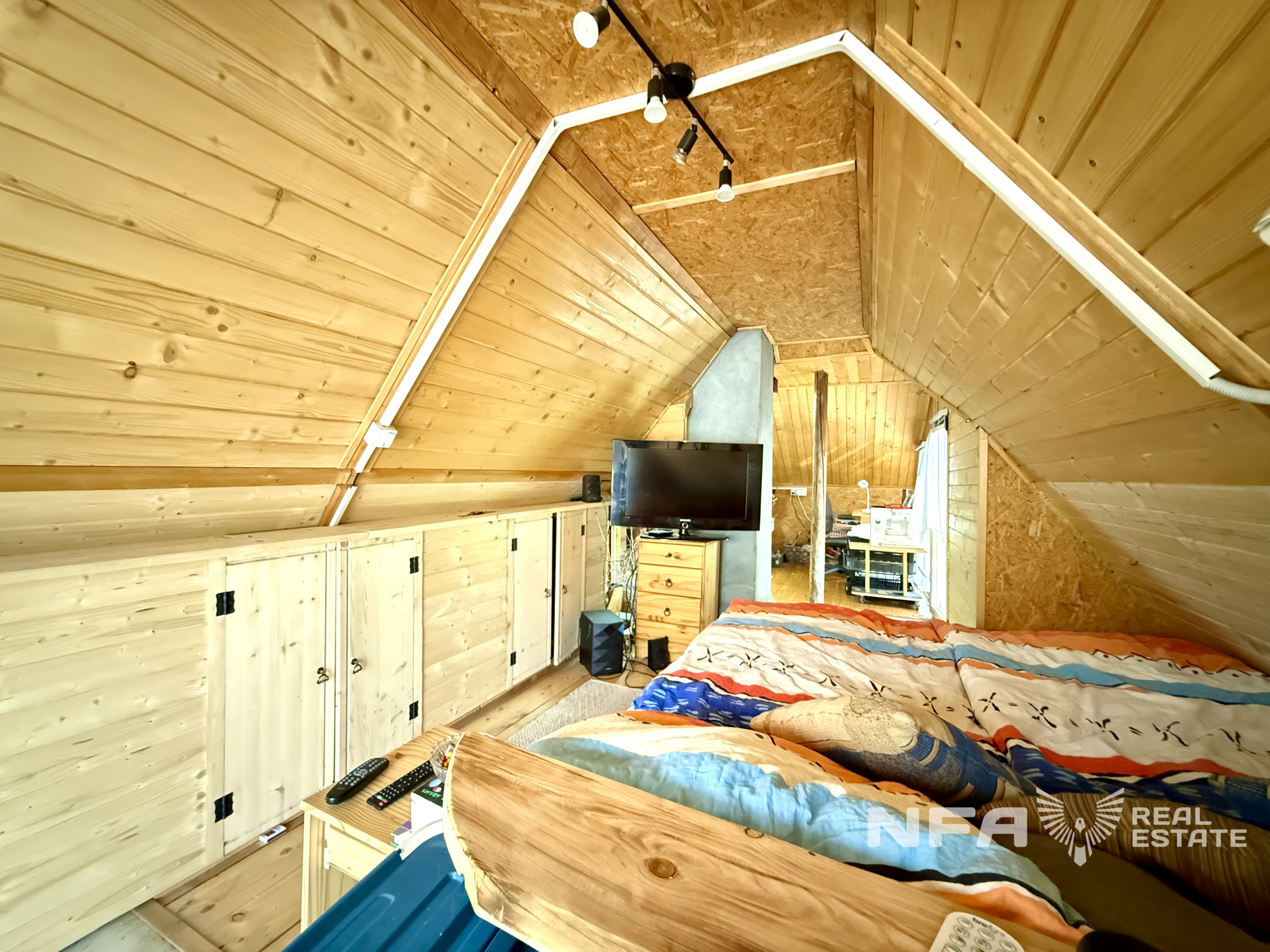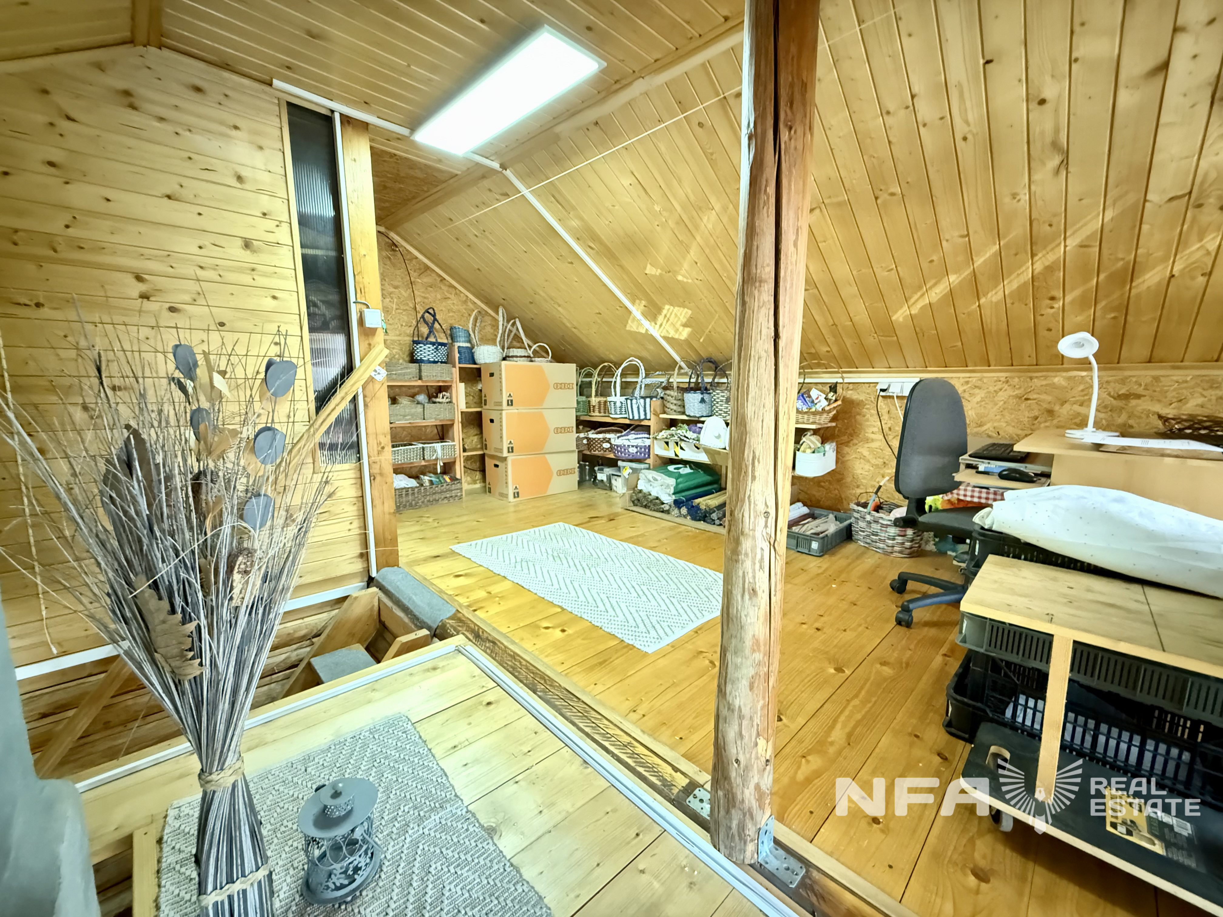 Strecha: plechová, nová (2 roky), izolácia – sklená vata.