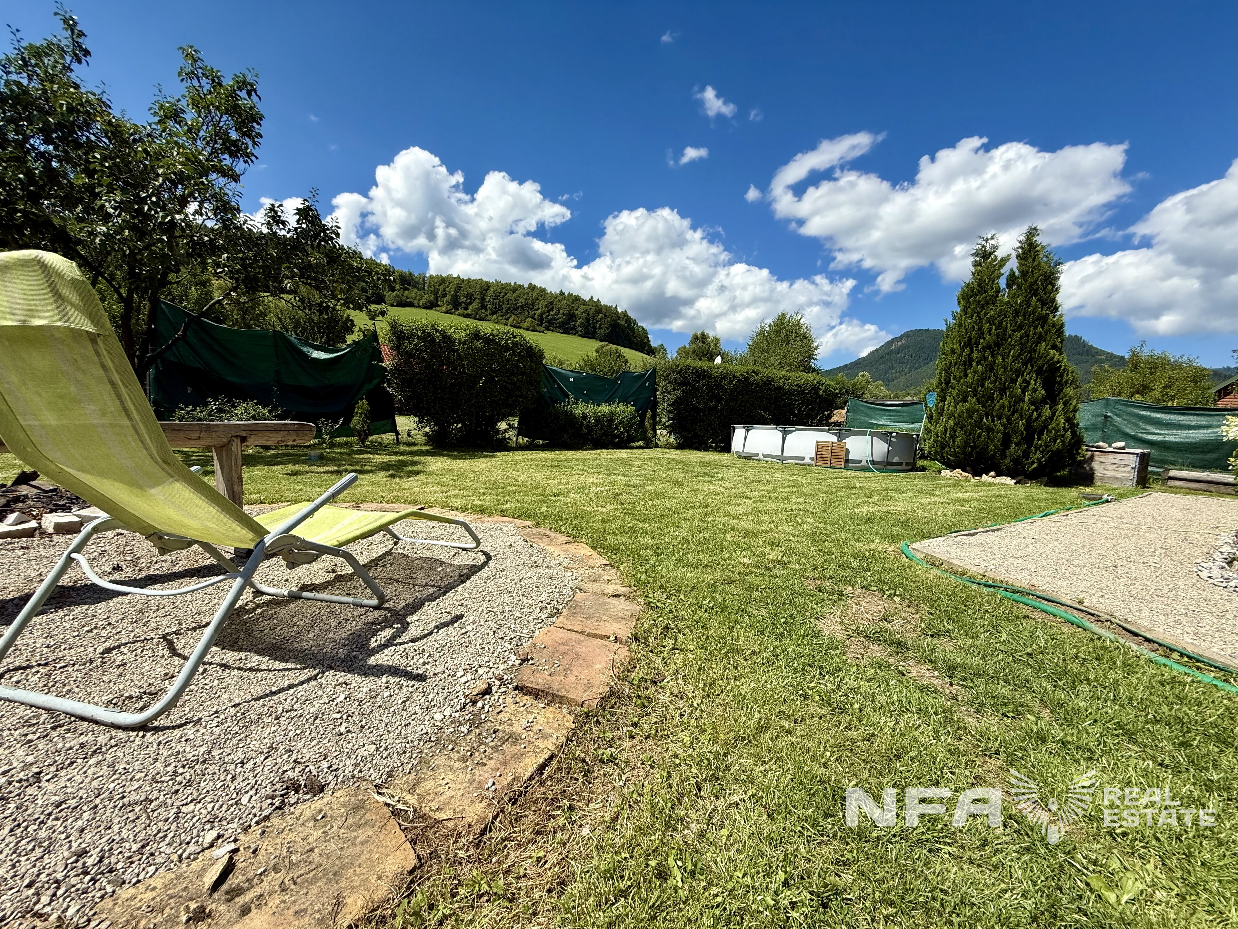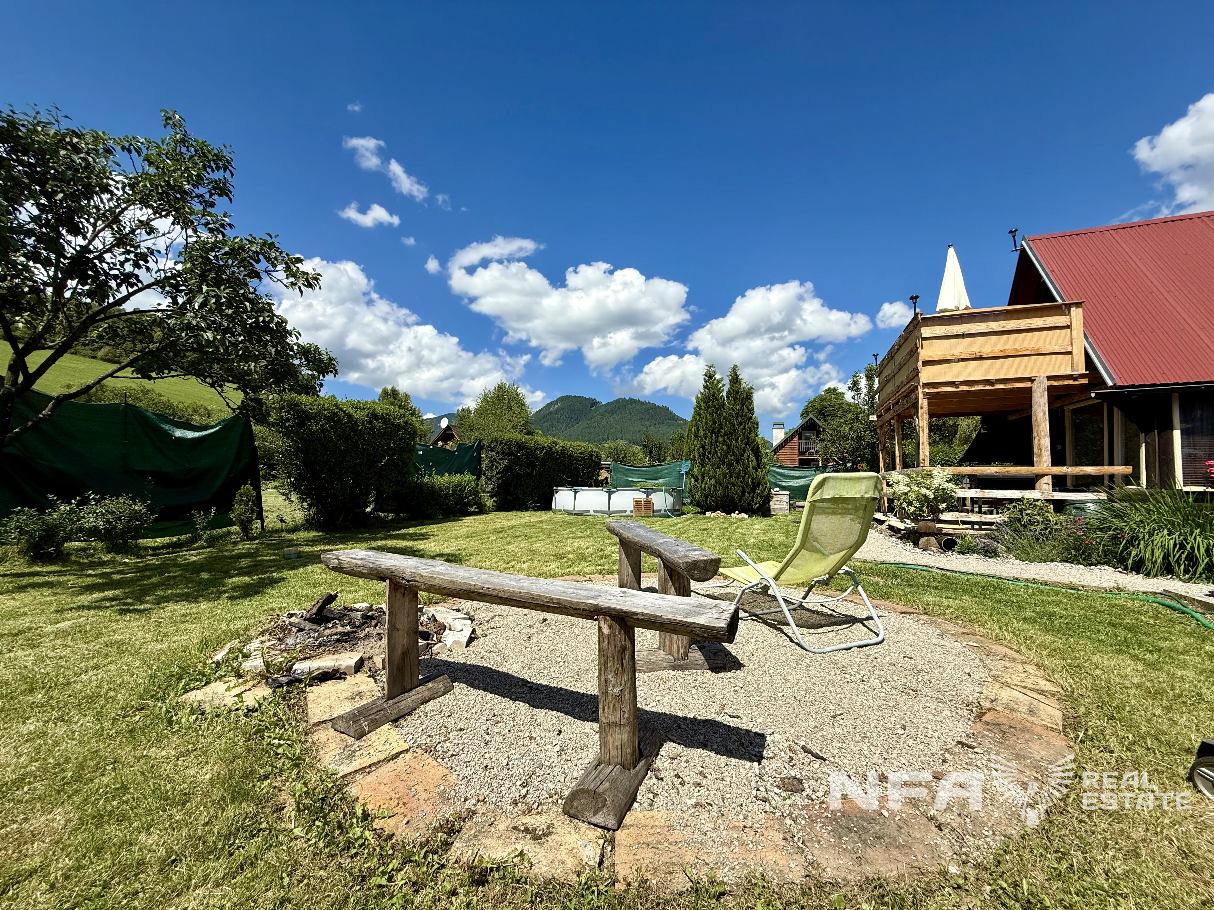 Chata je situovaná v tichom prostredí s množstvom zelene a okrasných rastlín, ideálna na víkendové úniky z mesta, ale aj na trvalé bývanie. Okolie ponúka široké možnosti turistiky, cykloturistiky a relaxu – kúpele Lúčky, priehrada Liptovská Mara či lyžiarske strediská sú na dosah.