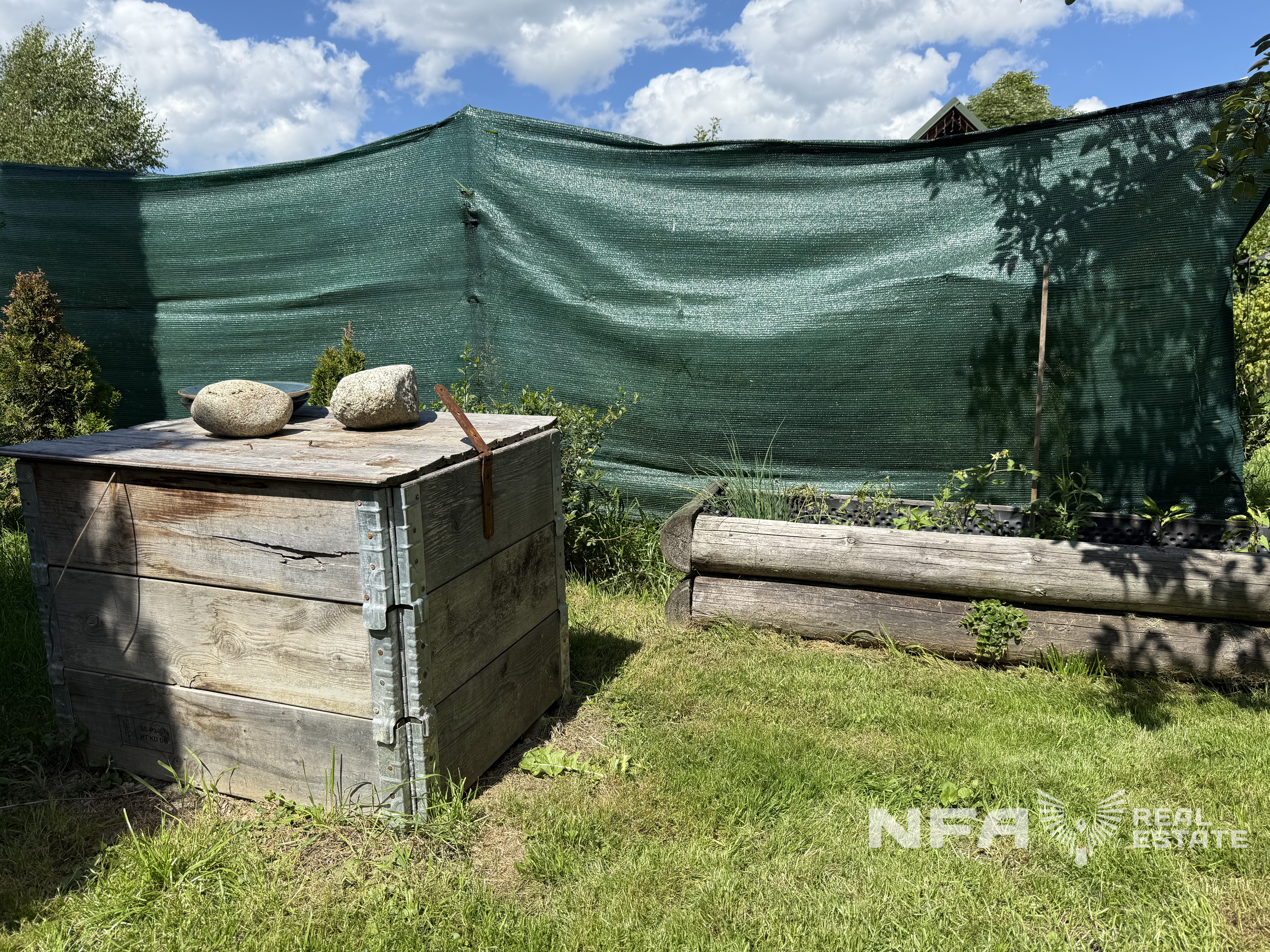 Na pozemku sa nachádza odkladacia miestnosť s prístreškom pre auto.