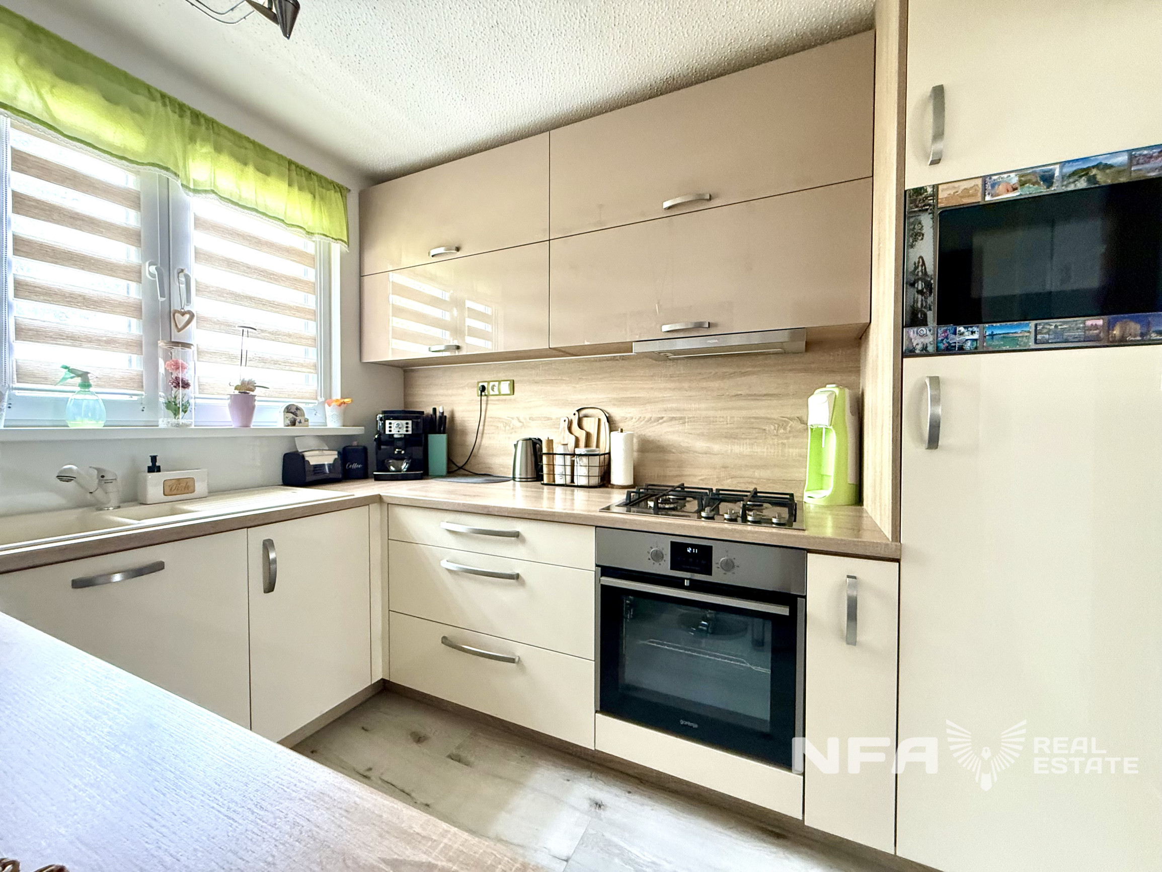 V rámci kompletnej rekonštrukcie bol byt kvalitne modernizovaný a prenajíma sa plne zariadený vrátane vstavaných spotrebičov a ďalších spotrebičov: práčka, sušička, chladnička s mrazničkou.