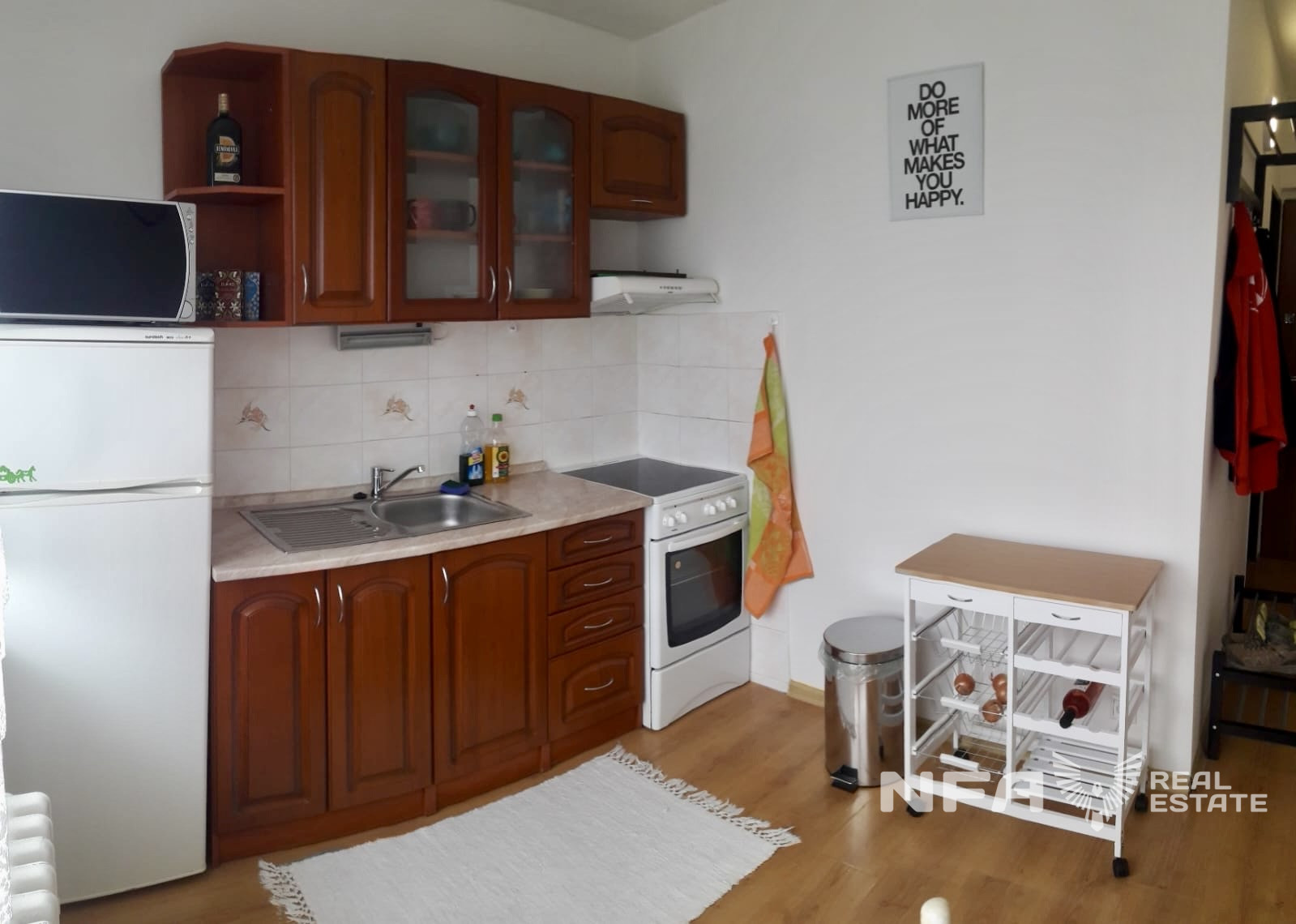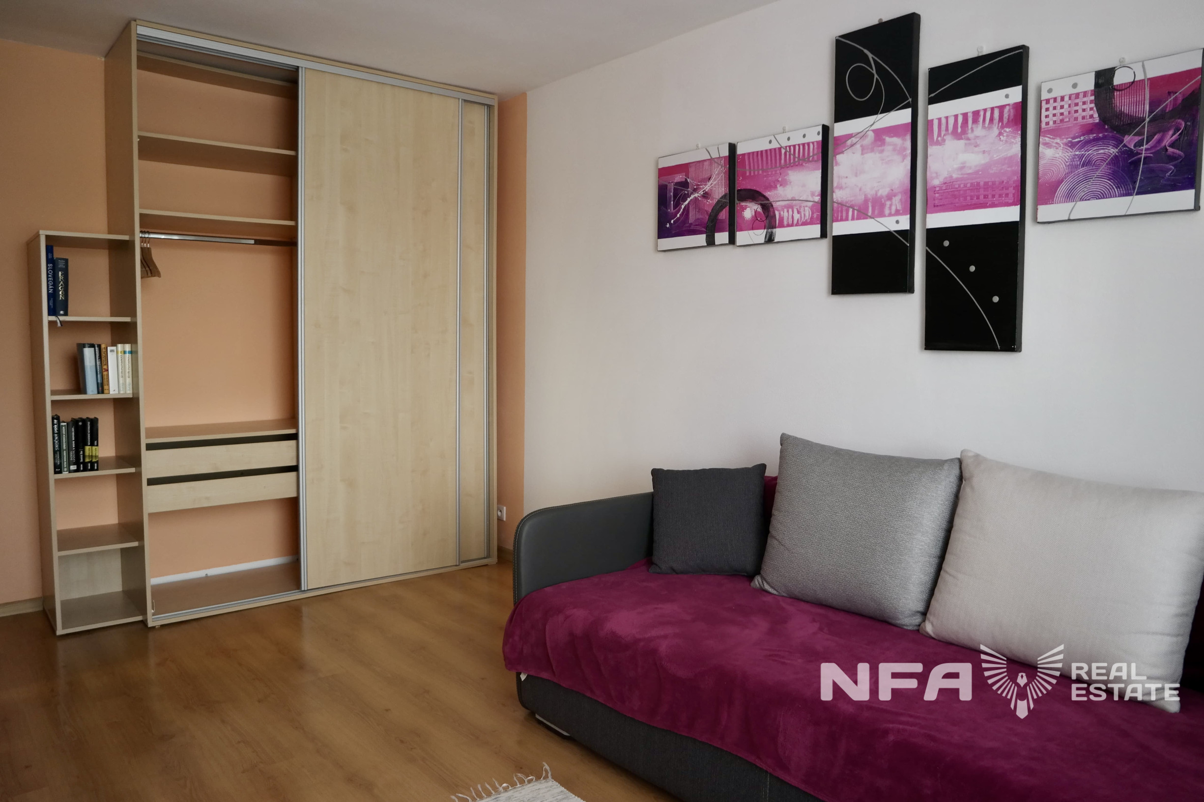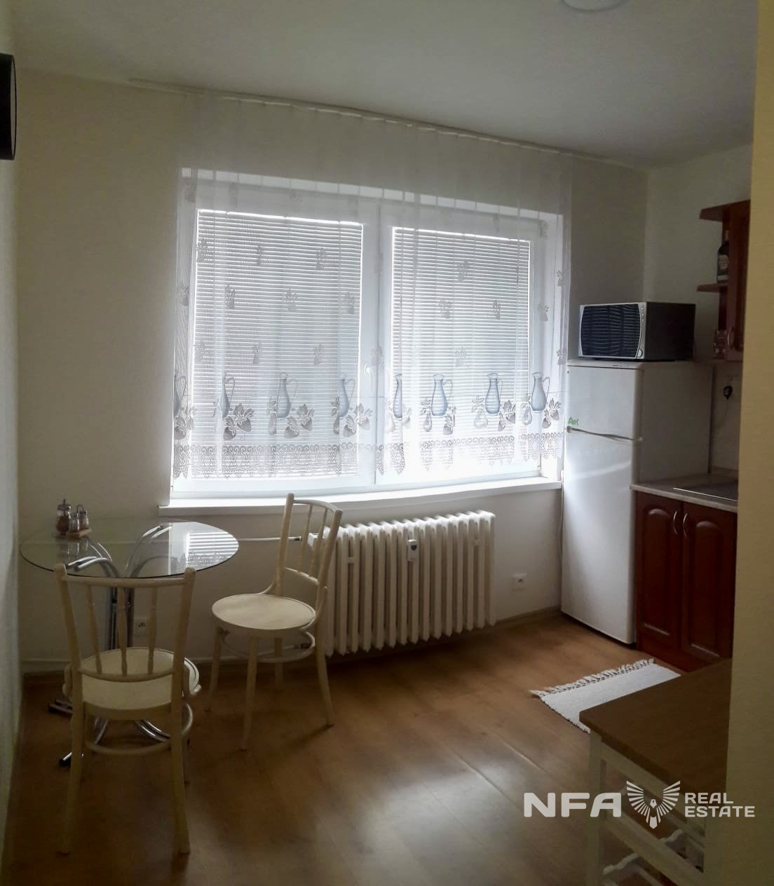 Byt pozostáva z priestrannej izby, samostatnej kuchyne a veľkej kúpeľne s vaňou. Podlaha v byte je plávajúca, má plastové okná a medené elektrické rozvody. Byt je orientovaný na východ, čo zabezpečuje príjemné ranné svetlo. Mesačné náklady sú len 150 € vrátane elektriny.