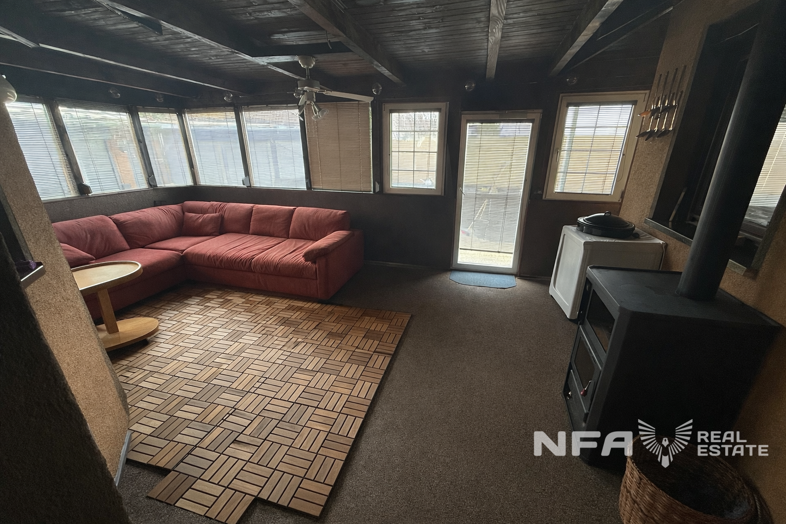 Vykurovanie je plynové, riešené podlahovým kúrením, ktoré zabezpečuje rovnomerné a komfortné teplo v celom interiéri. Mesačné náklady na bývanie sú približne 100 eur. V zimnej záhrade je navyše možnosť vykurovania samostatnou pecou na drevo, ktorá slúži výhradne pre tento priestor.